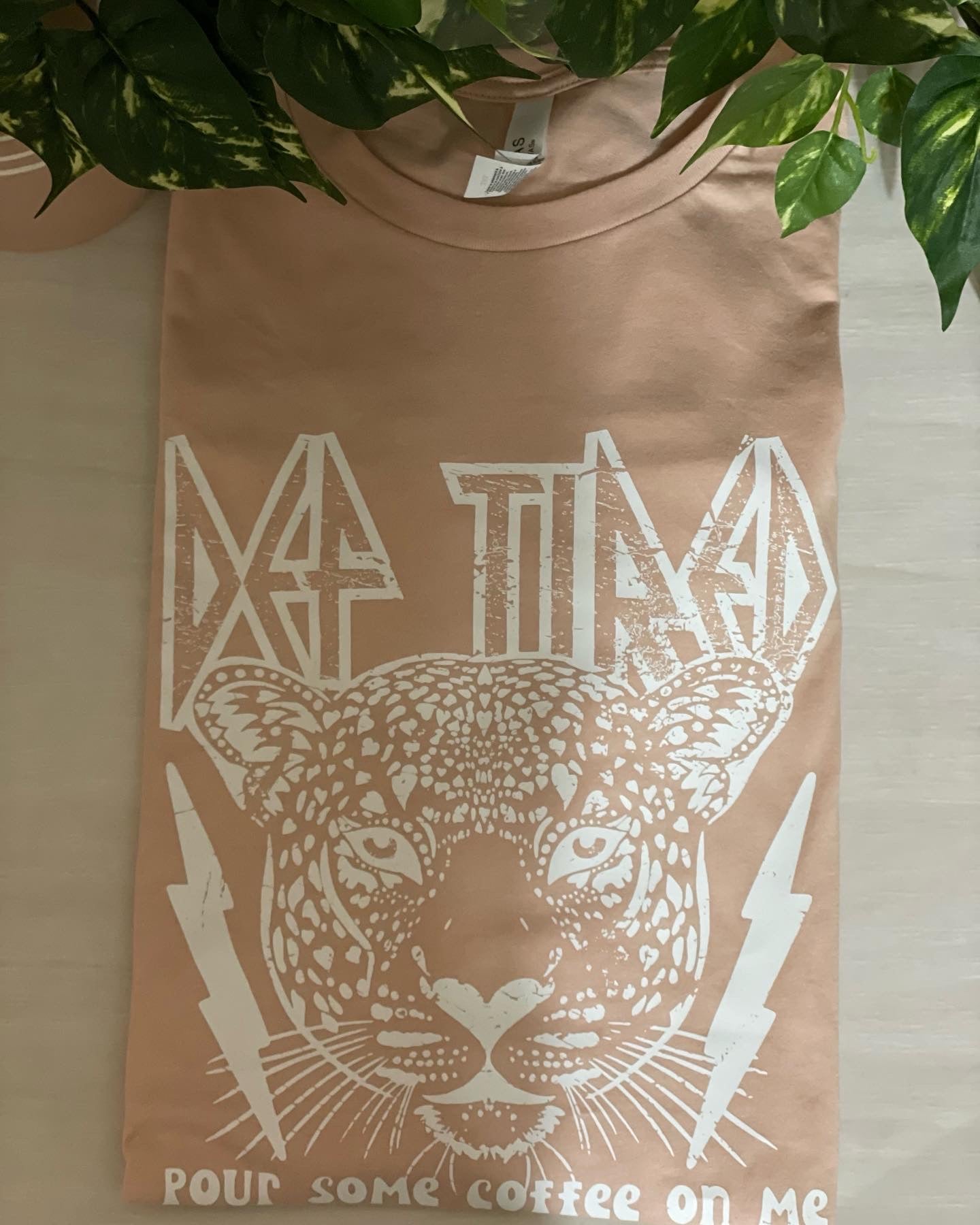 Def tired pour some coffee on me short sleeve t shirt. This is a peach colored shirt